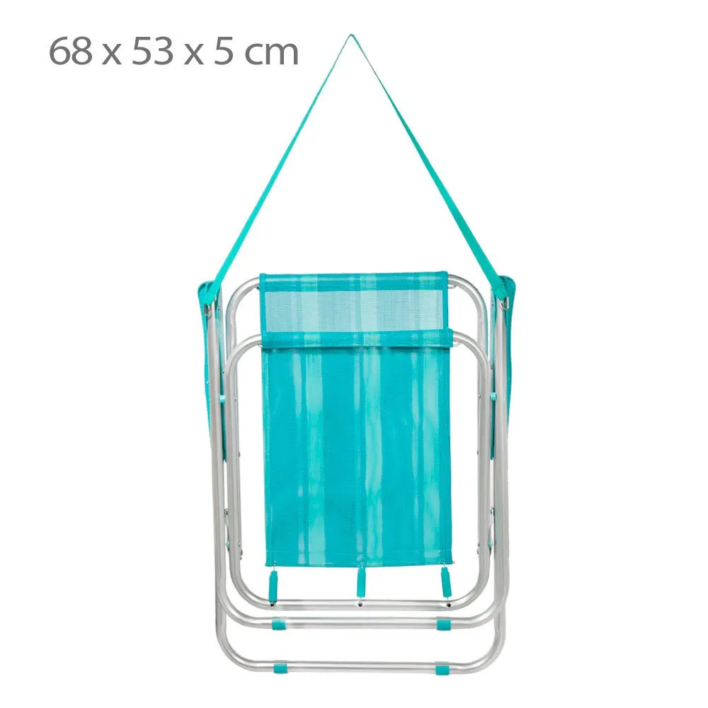 Made of aluminum and textilene, resistant and waterproof with a vertical striped design in Mediterranean blue tones.