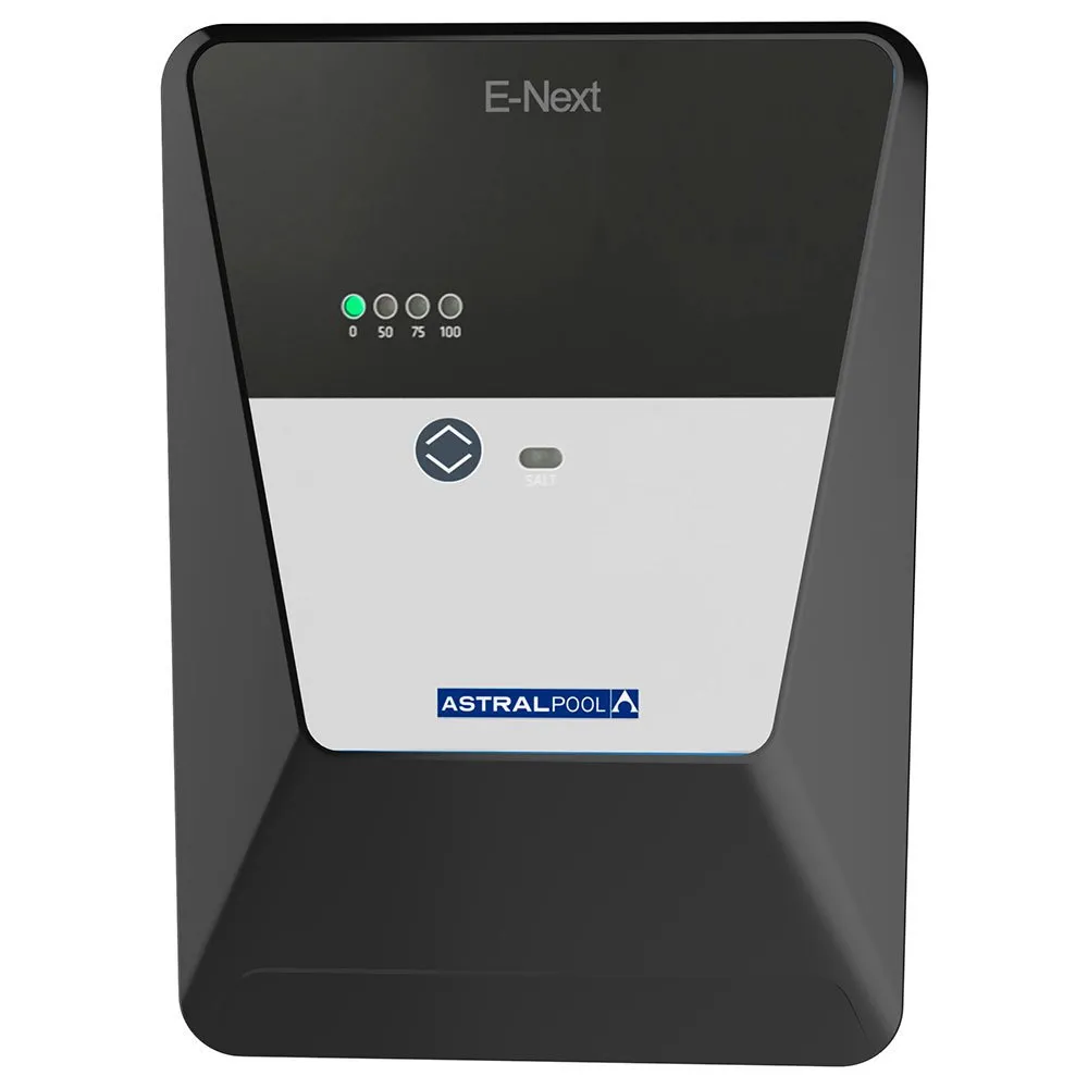 The ASTRALPOOL E-Next Up to 180m3 40g/h Salt Water Chlorinator System in black is a top-of-the-line pool chlorination and filtration system designed to keep your pool water clean and healthy. Suitable for pools of up to 180m3, this saltwater chlorinator helps to maintain the perfect balance of chlorine in your pool, ensuring that it stays clear, clean and safe for all swimmers. The E-Next chlorinator features an easy-to-use digital control panel that allows you to adjust the chlorine levels to meet your specific needs. It also comes with an LED display that lets you monitor the system’s performance, and a timer that lets you set the chlorination process to automatically turn on and off at specific times. Additionally, the system’s automatic self-cleaning feature helps to keep maintenance to a minimum, giving you greater convenience and peace of mind.With its sleek black finish and compact design, the ASTRALPOOL E-Next Up to 180m3 40g/h Salt Water Chlorinator System blends in seamlessly with your pool design. It is manufactured by a world-renowned brand in pool equipment and is of the highest quality, ensuring that you get many years of reliable and efficient use. If you want to keep your pool looking amazing and crystal clear, the ASTRALPOOL E-Next is the perfect choice for you.