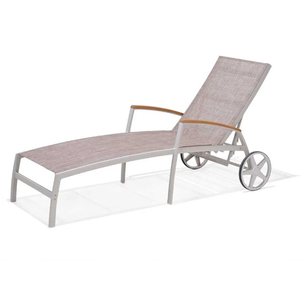 Chillvert-Imperia Sunbed Multipositions Aluminum / Beige Textile Marbled C / Arms Eucalyptus Wood Fsc (180,40X77,60X102,90Cm).