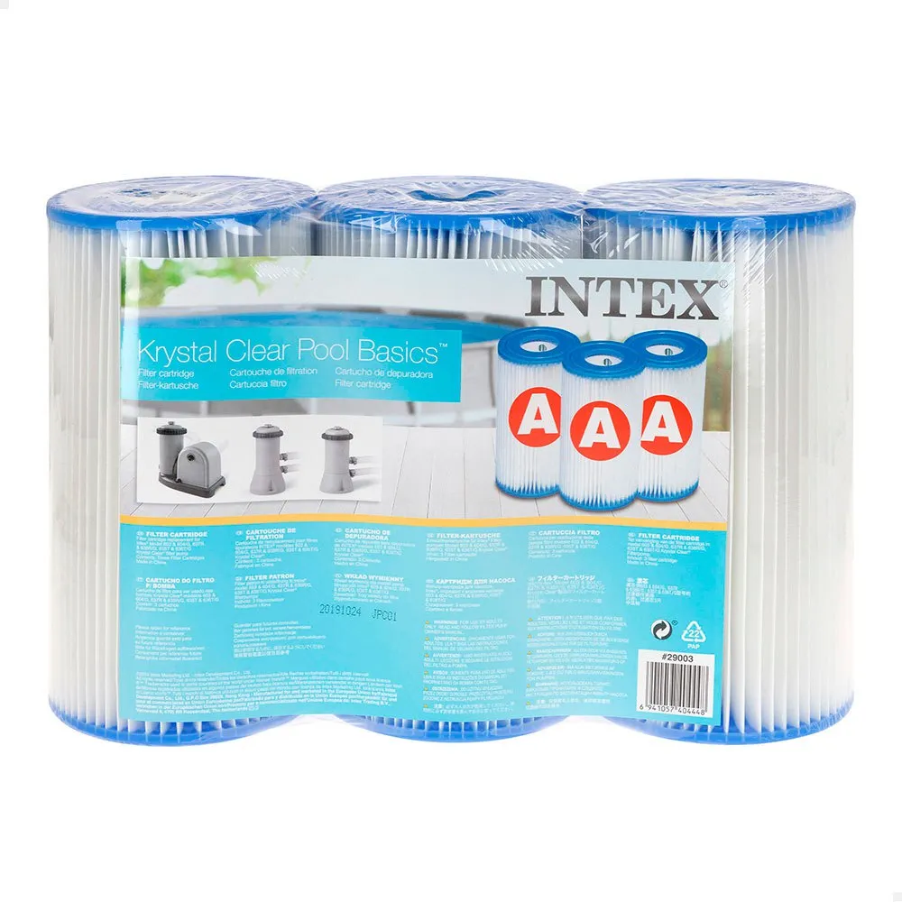 Pack 3 filters for Intex Type A sewage cleaners. The cartridge has to be cleaned frequently and it is advisable to change it every 2 weeks.