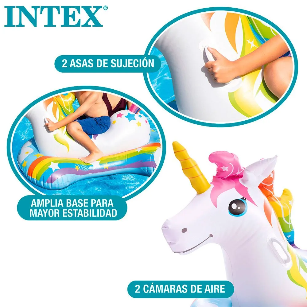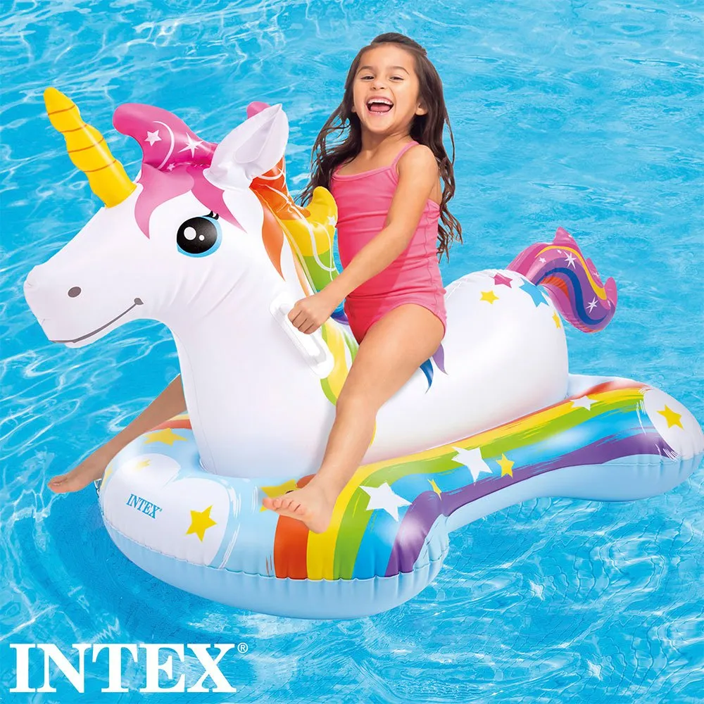 A perfect way to get your little ones in the water for hours of pool fun. Go on a sparkle adventure on this adorable rainbow unicorn ride-on including 2 handles for extra safety! A great addition to your summer days.