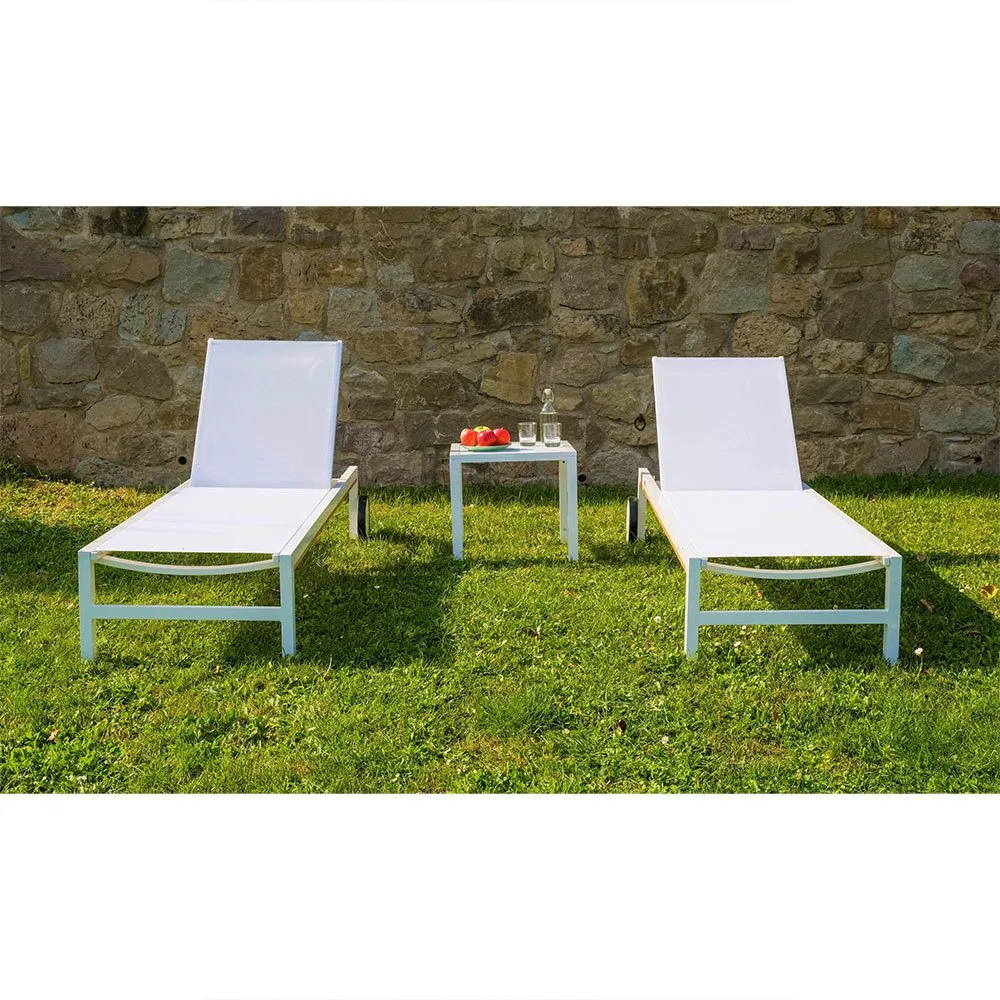 Powder-coated aluminium sunlounger in white and textilene in white.